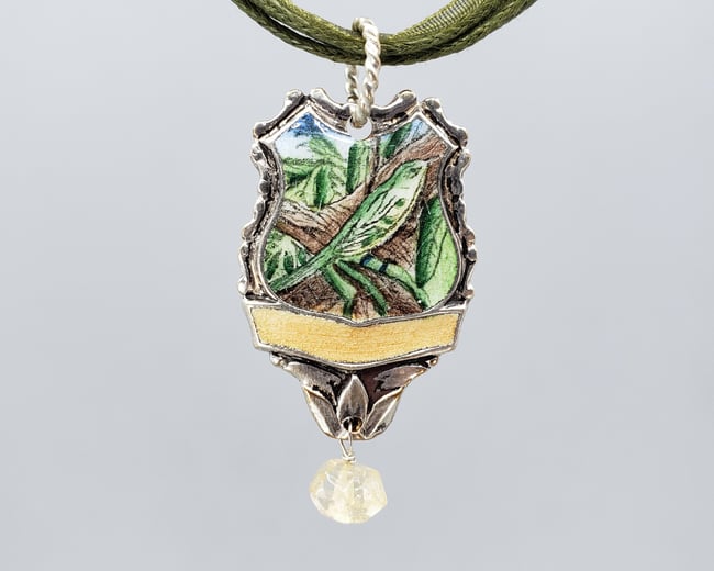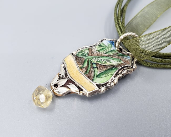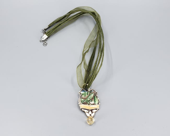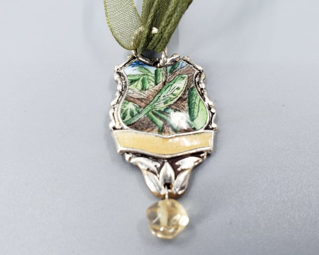 Original product name: Enameled Woodsy Bird Pendant with Citrine Bead, Made from a Vintage Silverplate Collector Spoon Handle - K0289
