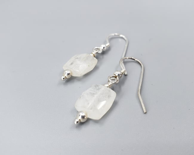 Faceted Rainbow Moonstone & Sterling Earrings - K0241