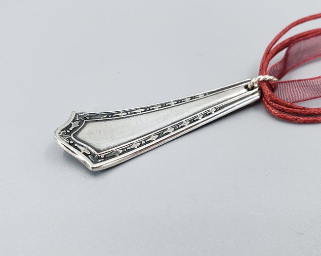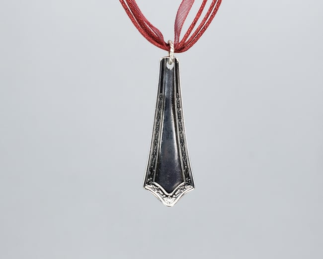 This adorable pendant is made from the handle of a piece of vintage silverplate flatware.